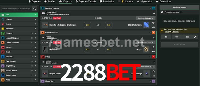 A aposta 2288bet oferece aos jogadores a experiência mais conveniente de apostas em eSports!